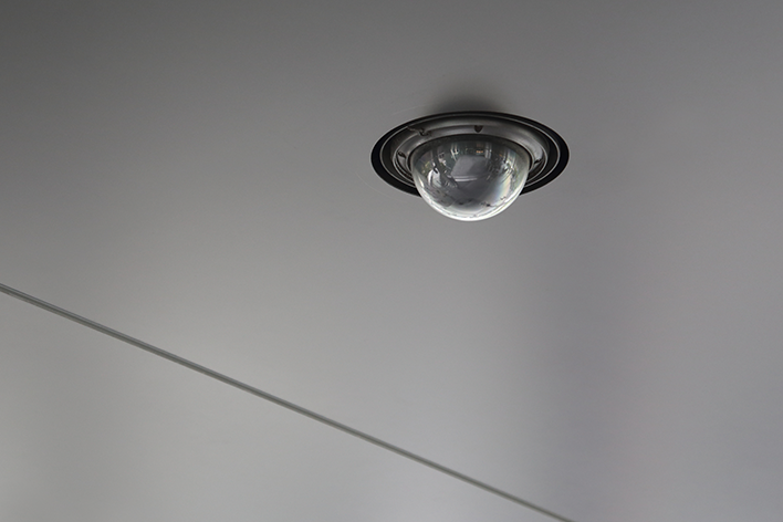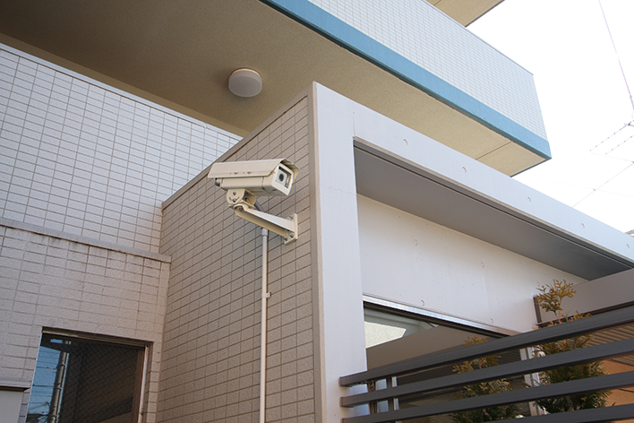 - 玄関には、威圧感を与えないデザインのカメラを設置。